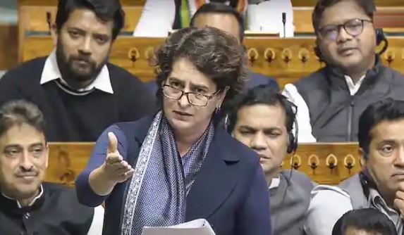 New Delhi : Congress leader Priyanka Gandhi on Monday participated in the discussion on ‘150 years of Vande Mataram’ in the Lok Sabha and questioned why the House was conducting a debate on the national song, 79 years after India’s independence, when there were more important issues to discuss.